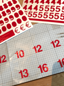 Voir un imprimeur ? Si on compte le temps qu’il découpe, qu’il échenille∗ des chiffres de 14mm, le taper∗∗ il va facturer ça 40€ et encore si il accepte de prendre le super projet.